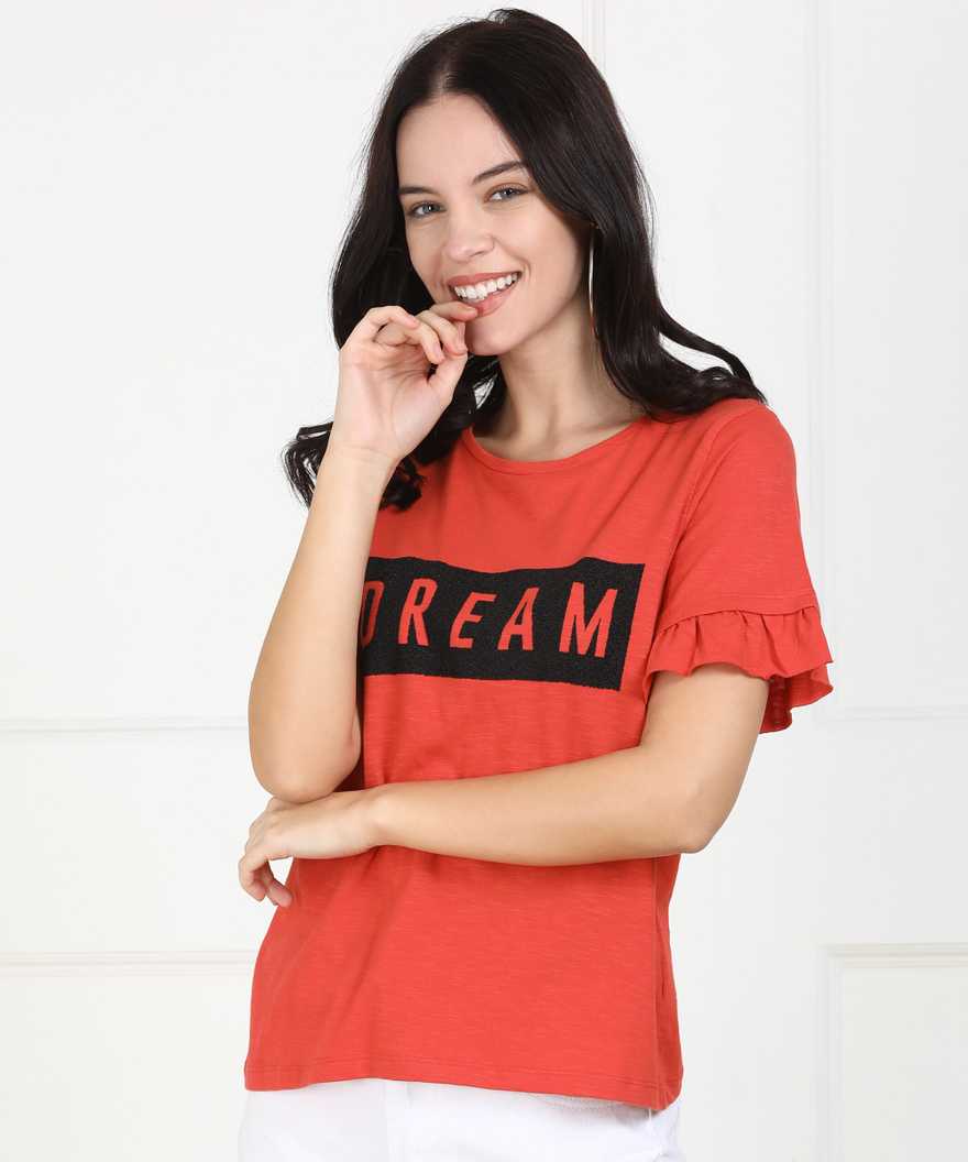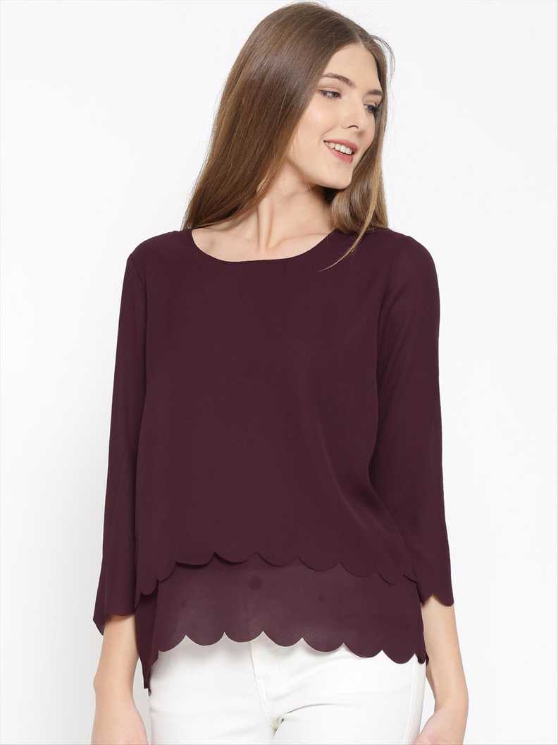 Casual 3/4 Sleeve Solid Women Maroon Top