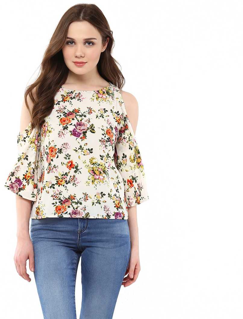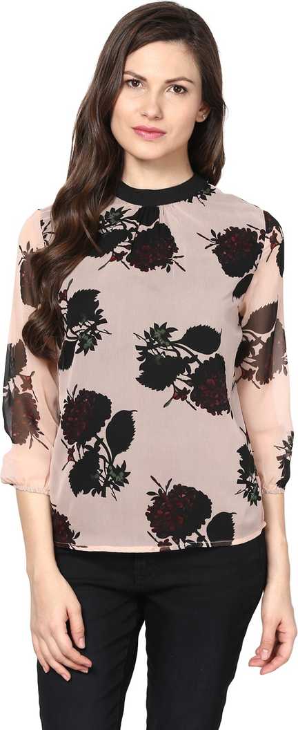 Casual 3/4 Sleeve Floral Print Women Black Top