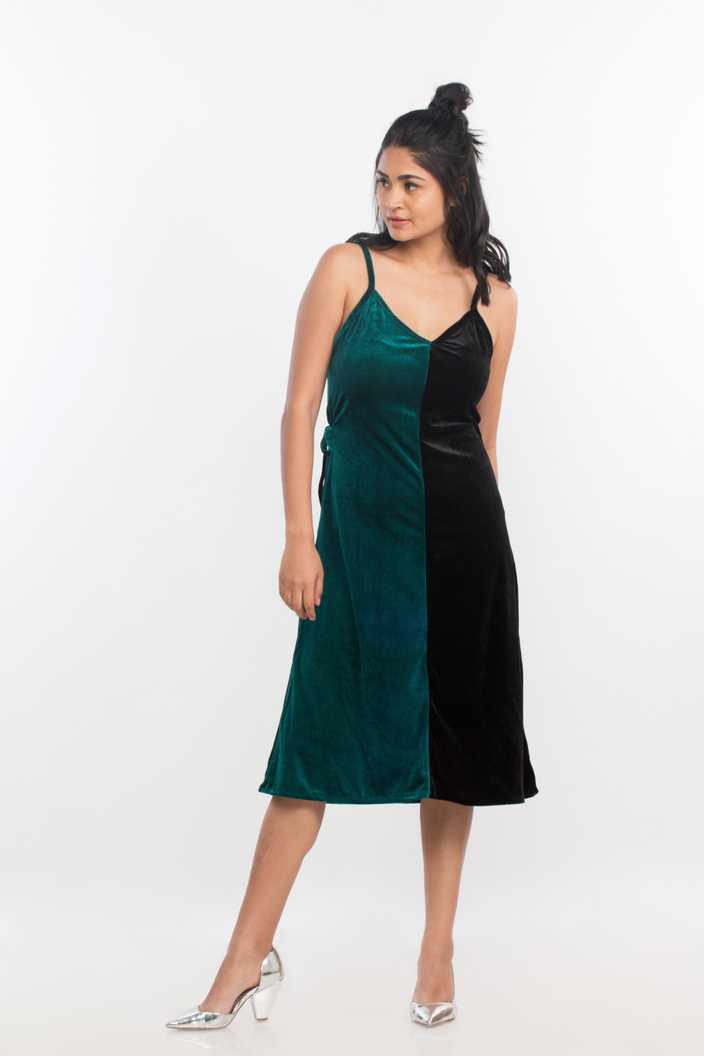 Women A-line Black, Green Dress