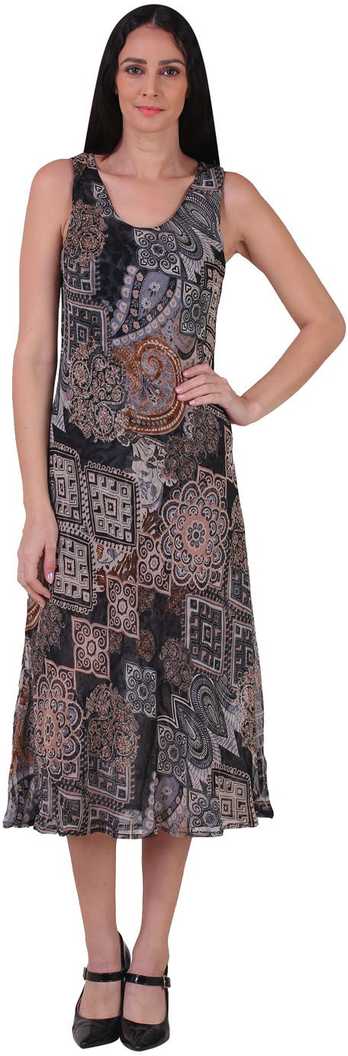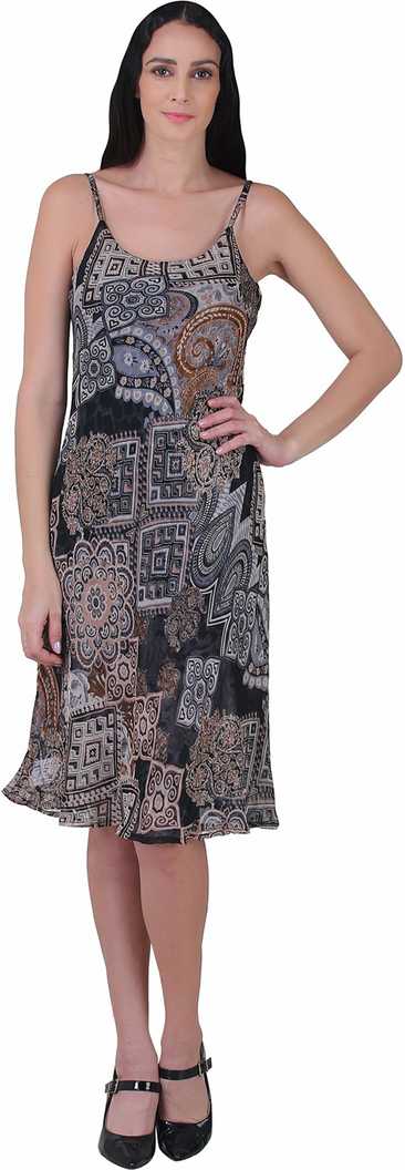 Women A-line Brown, Black Dress