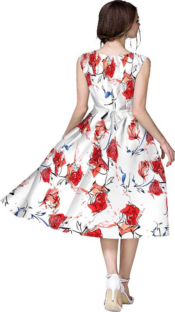 Women Fit and Flare Red, White, Multicolor Dress
