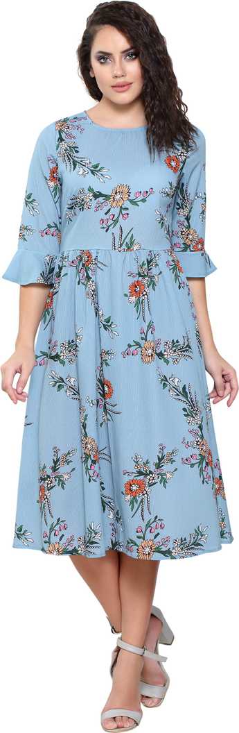 Women Fit and Flare Blue Dress