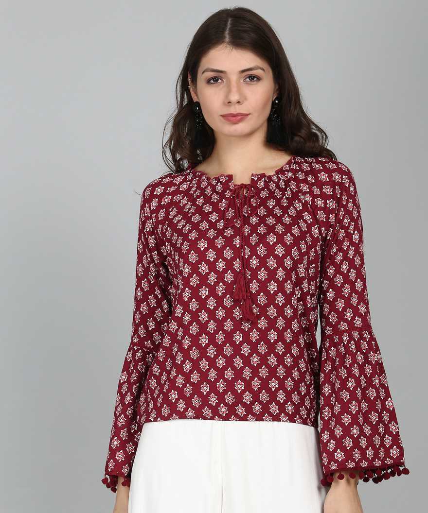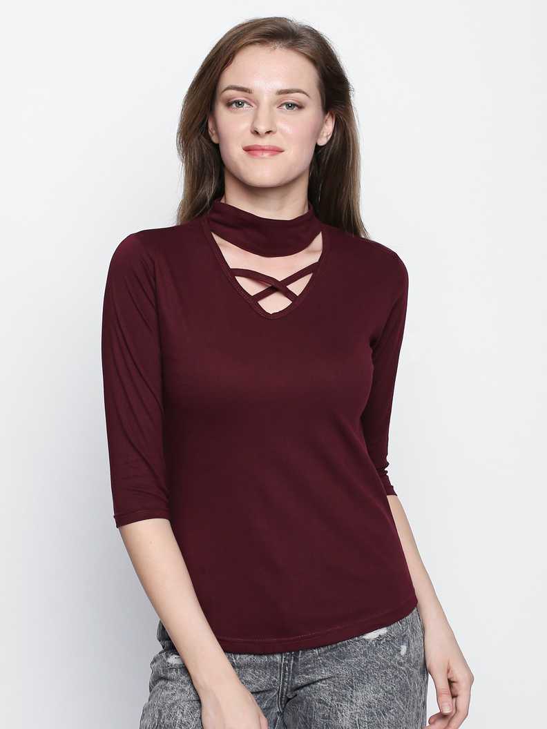 Casual 3/4th Sleeve Solid Women's Maroon Top