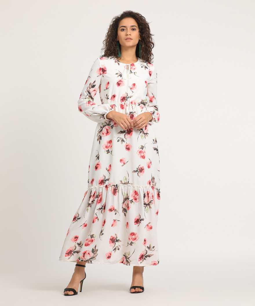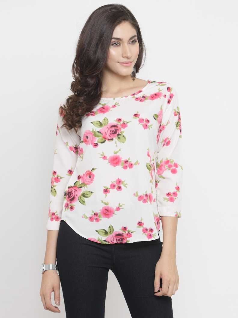 Casual 3/4th Sleeve Floral Print Women's White Top