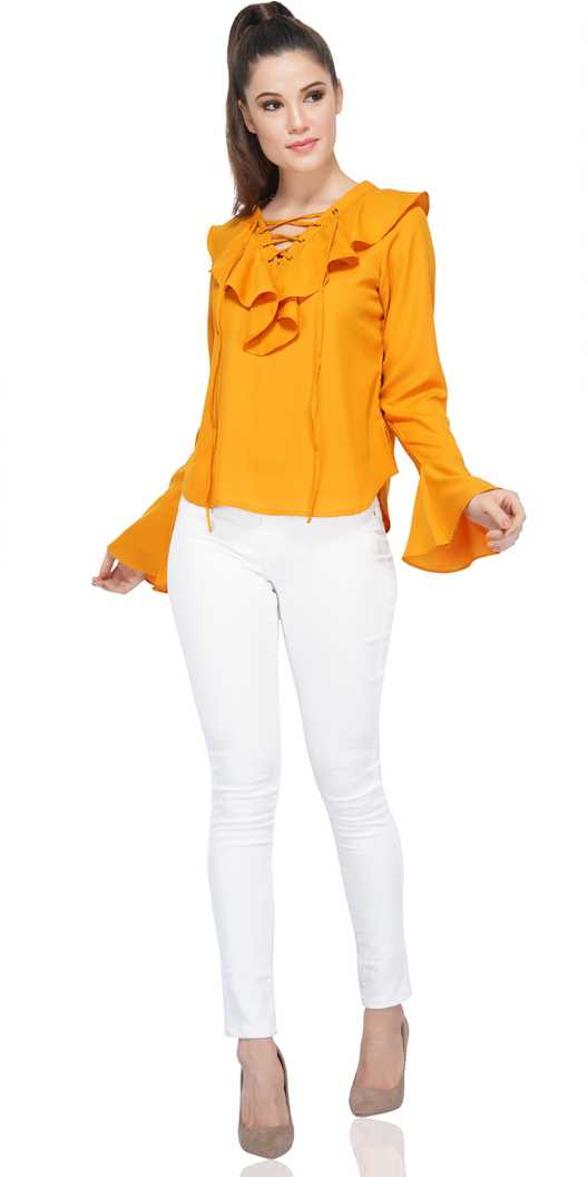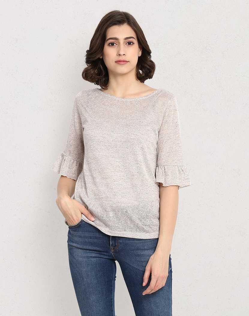 Casual Bell Sleeve Self Design Women's Beige Top#JustHere