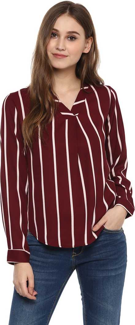 Casual Full Sleeve Striped Women's Maroon Top