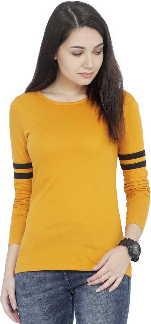 Solid Women's Round Neck Yellow T-Shirt