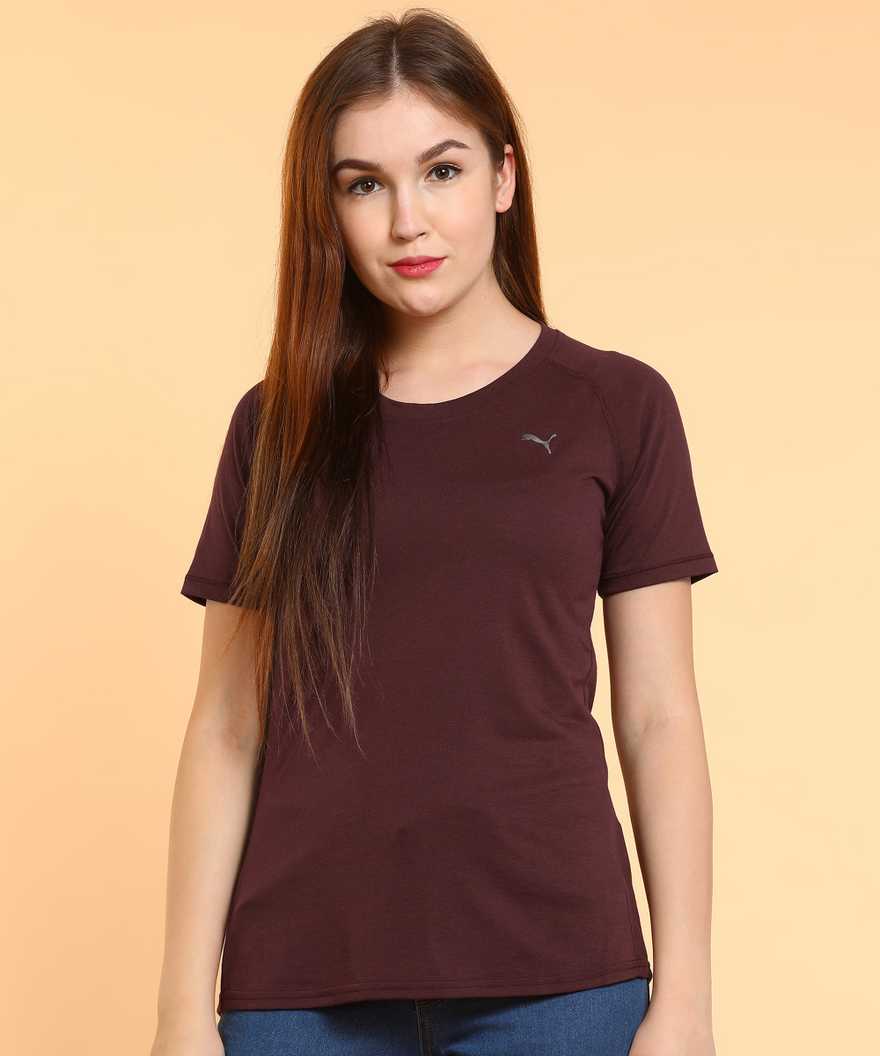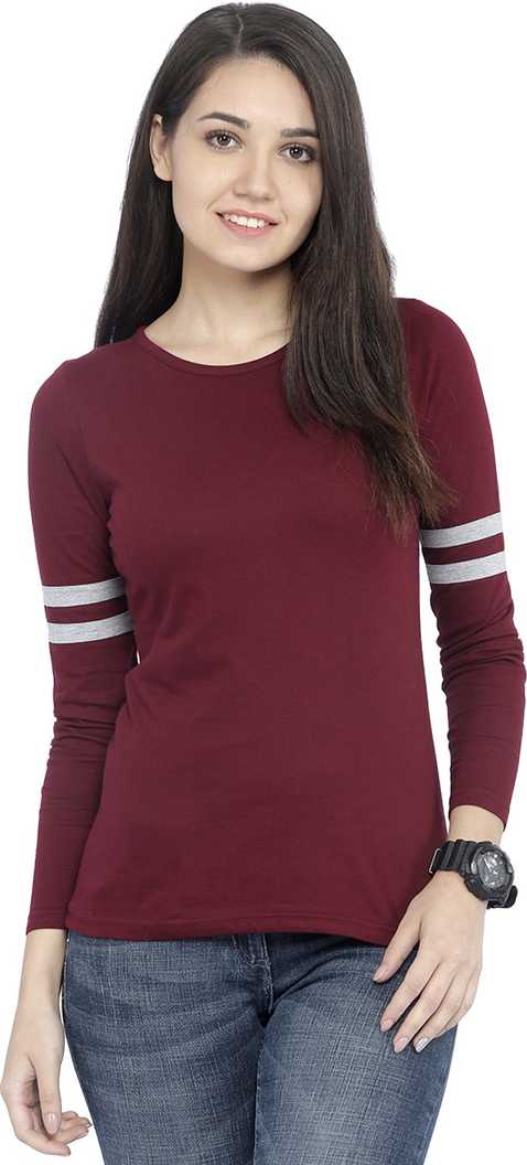 Solid Women's Round Neck Maroon T-Shirt