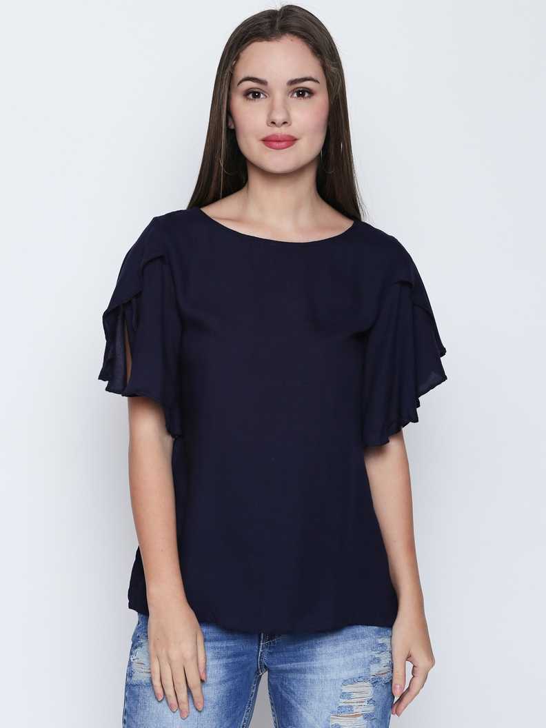 Casual Butterfly Sleeve Solid Women's Blue Top
