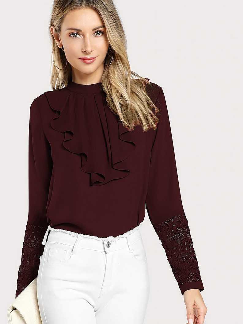 Party Full Sleeve Lace Women's Maroon Top