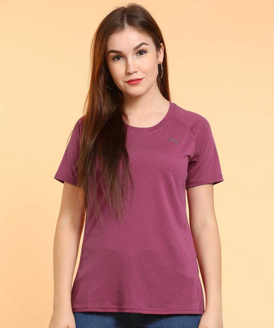 Solid Women's Round Neck Purple T-Shirt