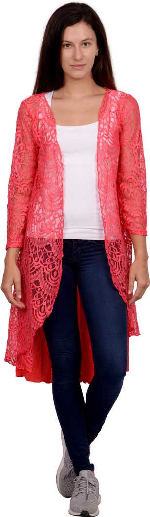 Women Asymmetric 3/4th Sleeve Pink Shrug