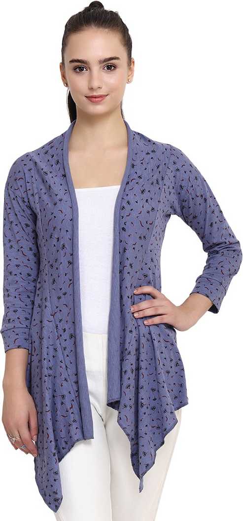 Women Asymmetric 3/4th Sleeve Blue Shrug