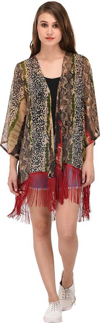 Women Asymmetric 3/4th Sleeve Multicolor Shrug