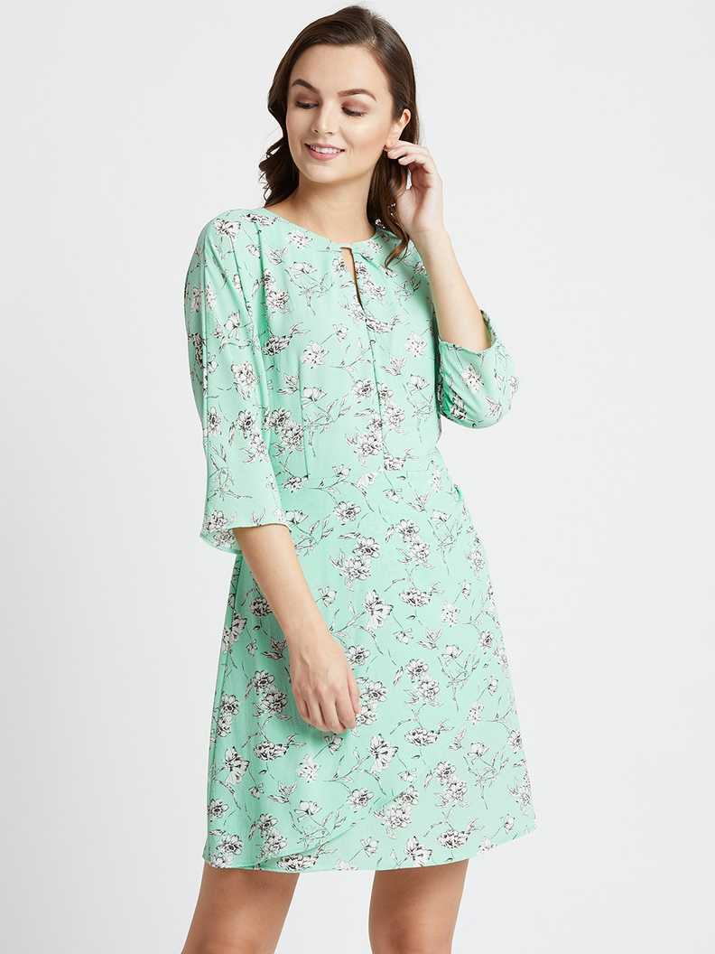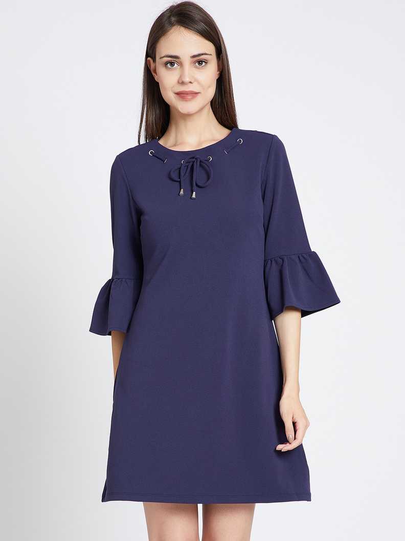 Casual Flutter Sleeve Floral Print Women's Dark Blue Top