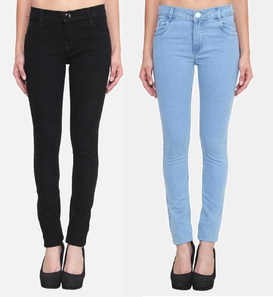 Slim Women Light Blue, Black Jeans (Pack of 2)