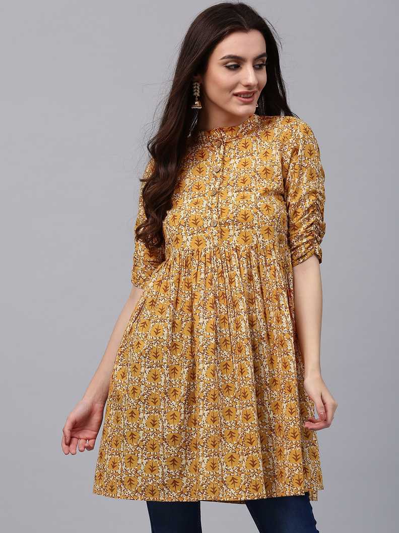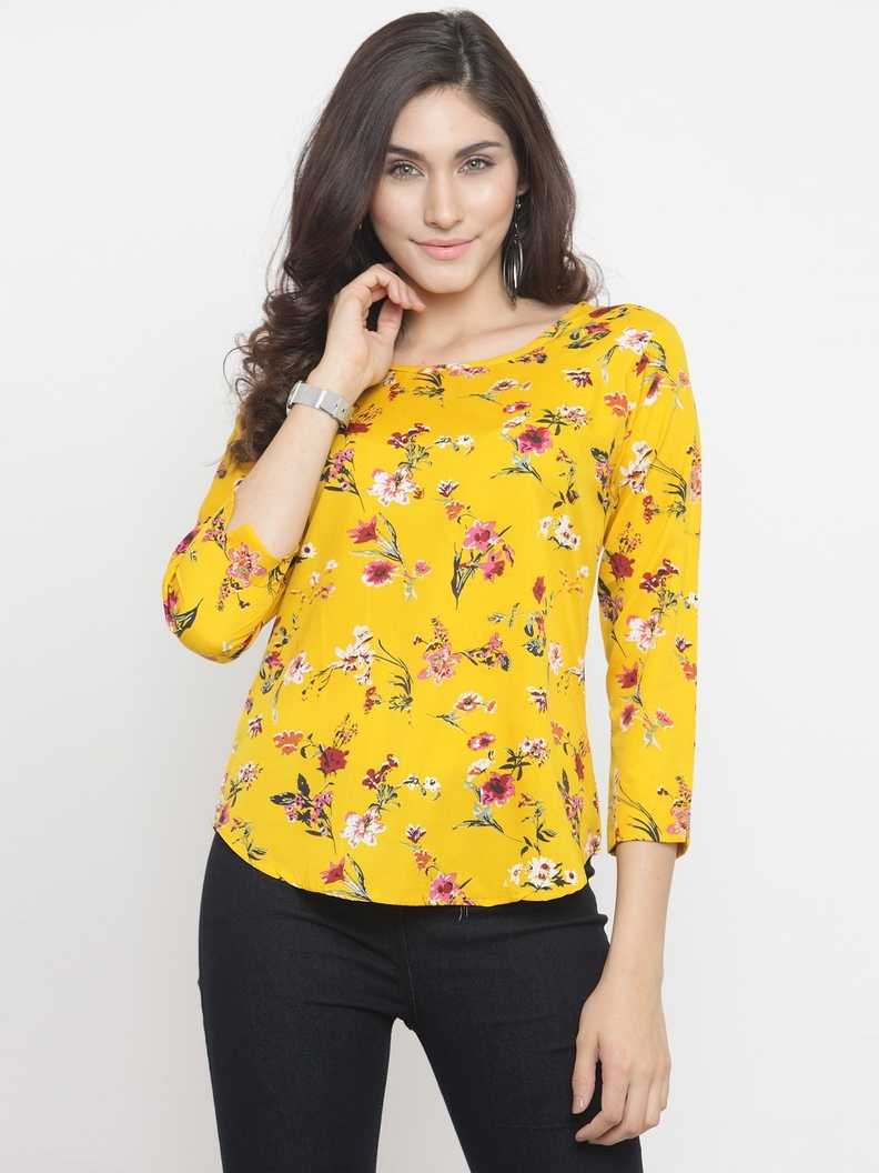 Casual 3/4th Sleeve Floral Print Women's Yellow Top