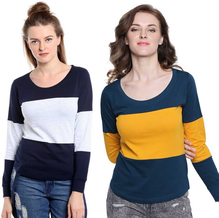 Self Design Women's Round Neck Multicolor T-Shirt (Pack of 2)