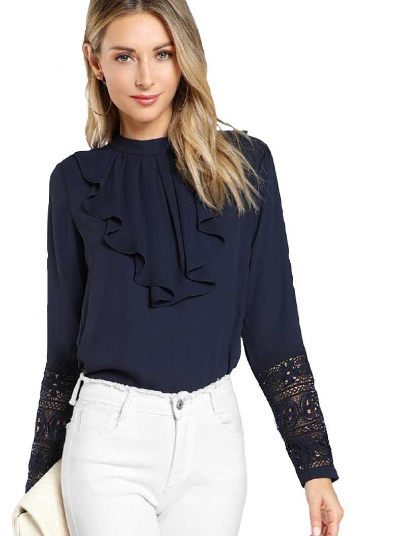 Casual Full Sleeve Solid, Lace Women's Blue Top