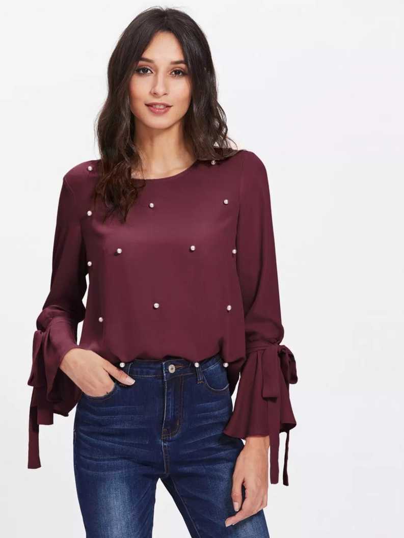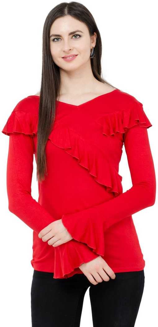 Casual Full Sleeve Solid, Lace Women's Maroon Top
