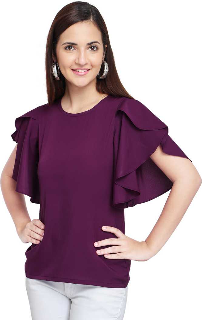 Casual Butterfly Sleeve Solid Women's Purple Top