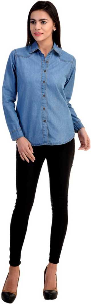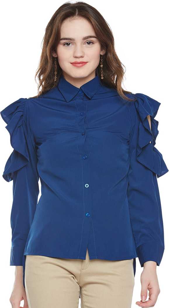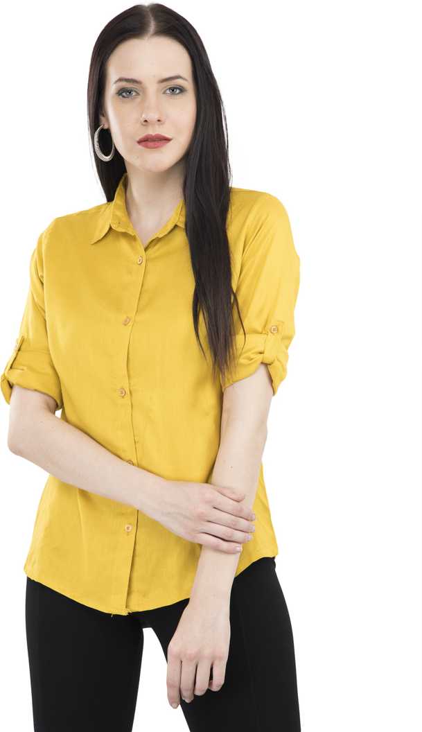 Selvia Women Regular Fit Solid Spread Collar Casual Shirt