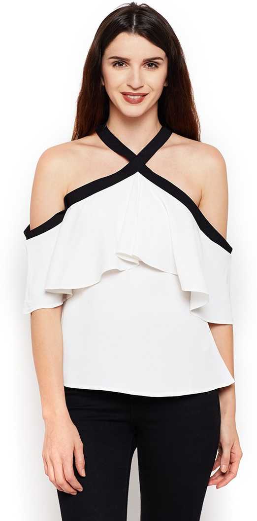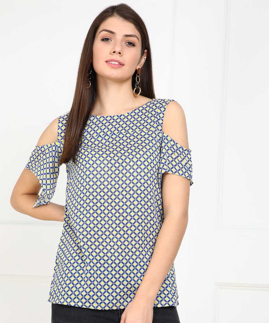 Casual Cold Shoulder Printed Women Multicolor Top