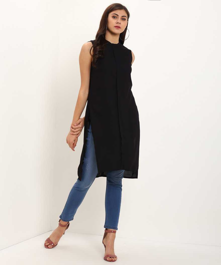 Casual Sleeveless Solid Women Black Top