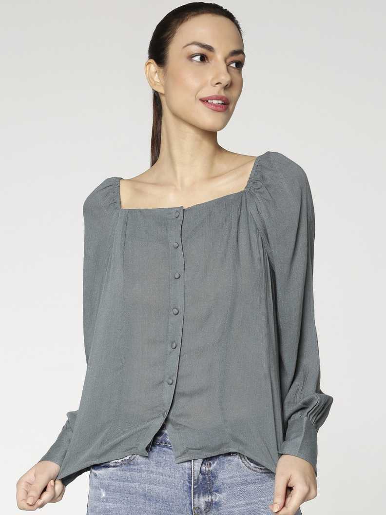 Casual Full Sleeve Solid Women's Green Top