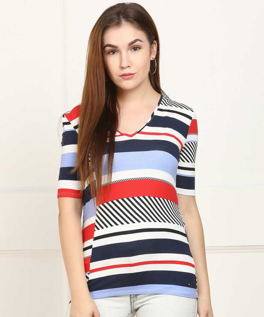 Casual Half Sleeve Printed Women Multicolor Top