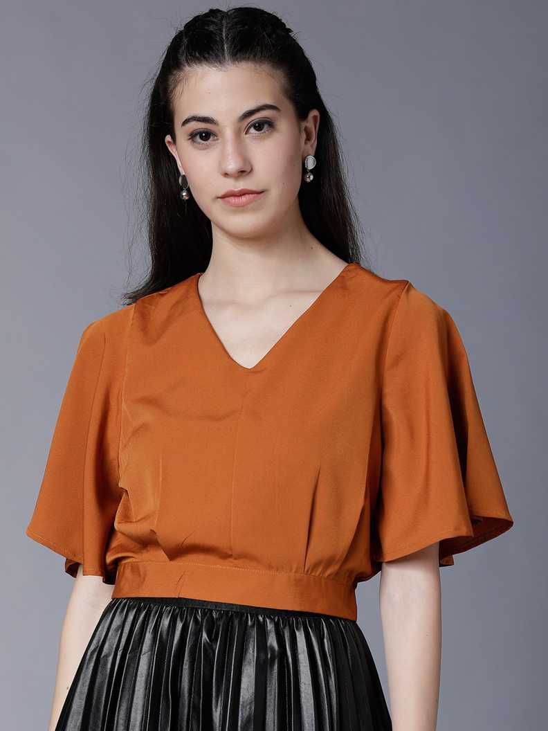 Casual Half Sleeve Solid Women Orange Top