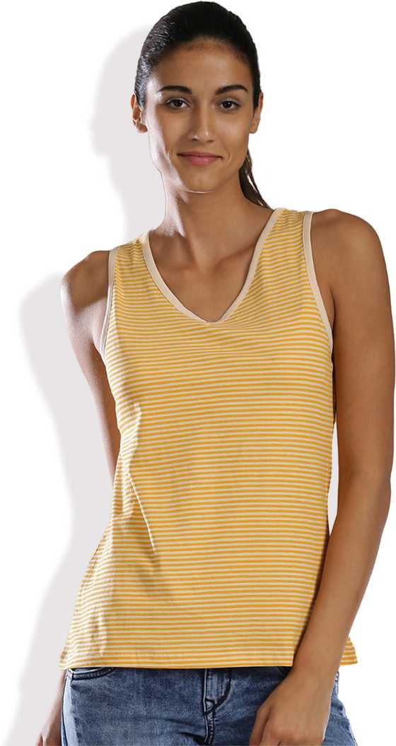 Casual Sleeveless Striped Women Beige, Yellow Top