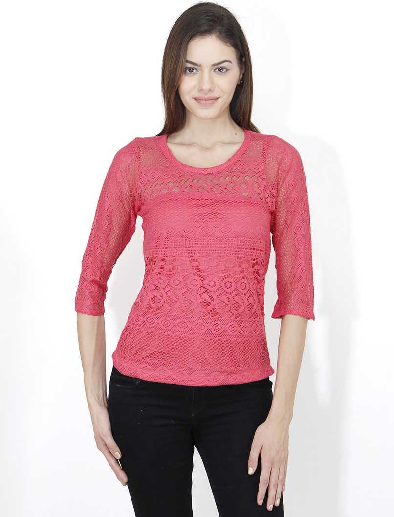 Casual Half Sleeve Solid Women Red Top
