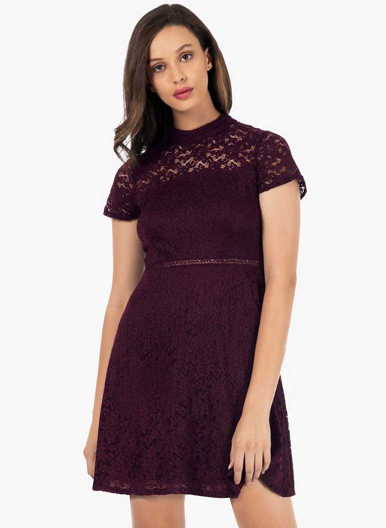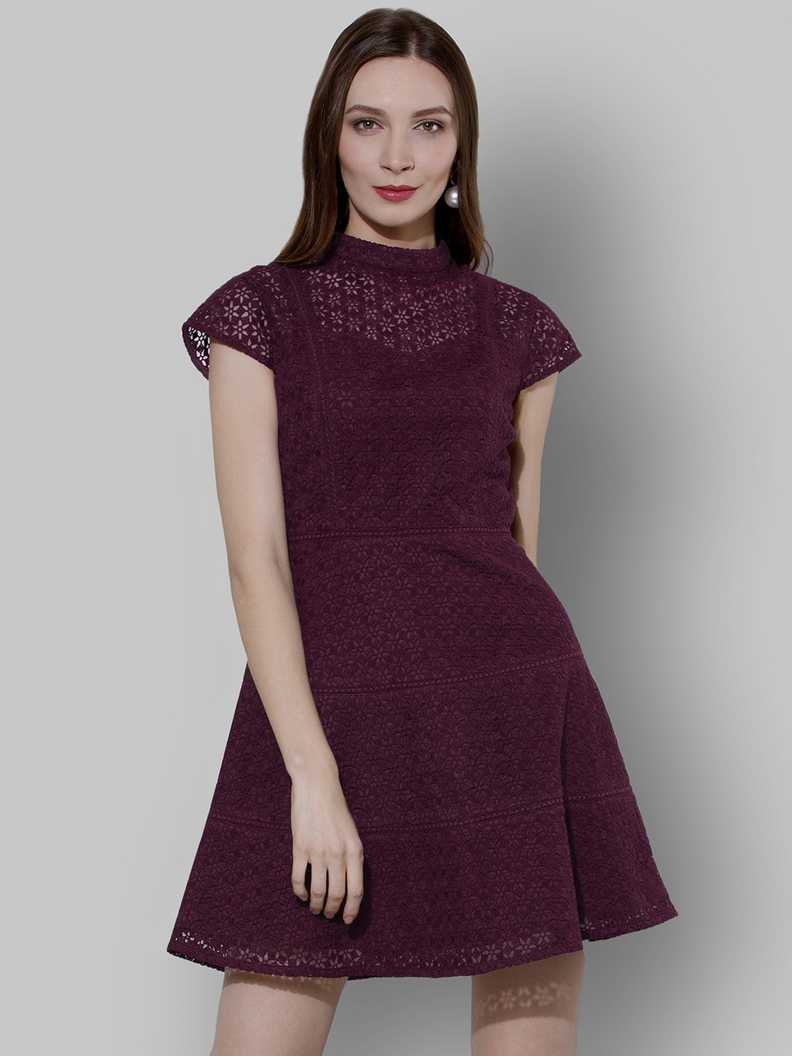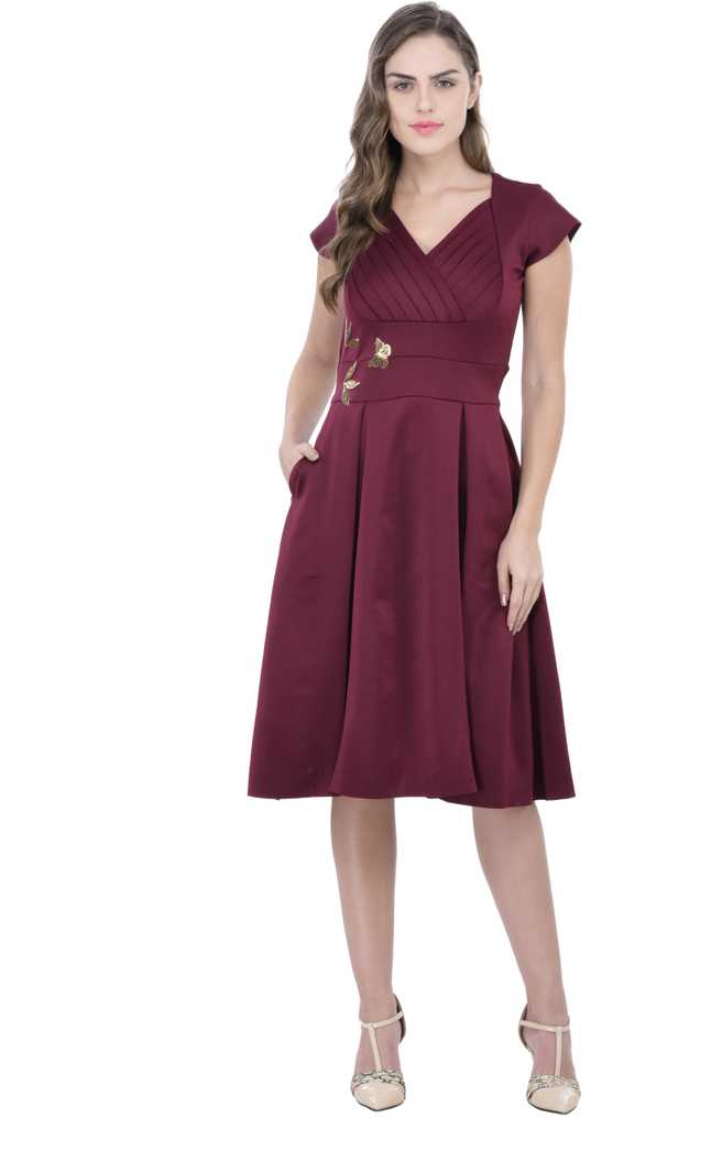 Women Fit and Flare Maroon Dress
