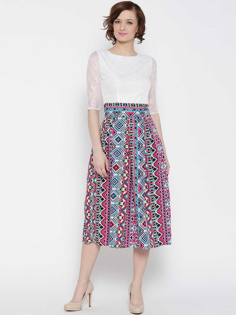 Women Gathered White, Pink, Light Blue Dress