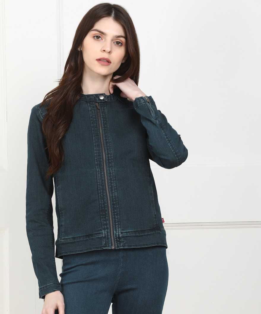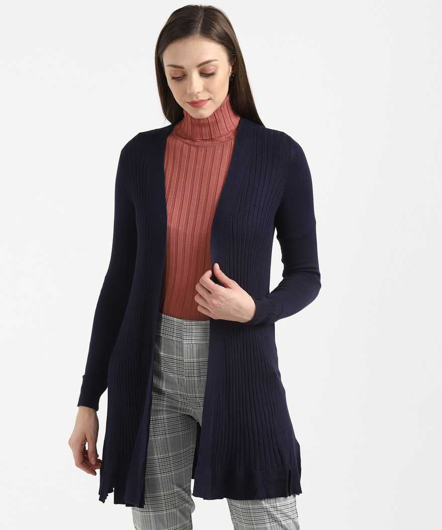 Solid Double Breasted Casual Women's Full Sleeve Blazer (Blue)