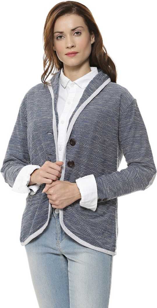 Solid Single Breasted Casual Women Full Sleeve Blazer (Blue, Grey)