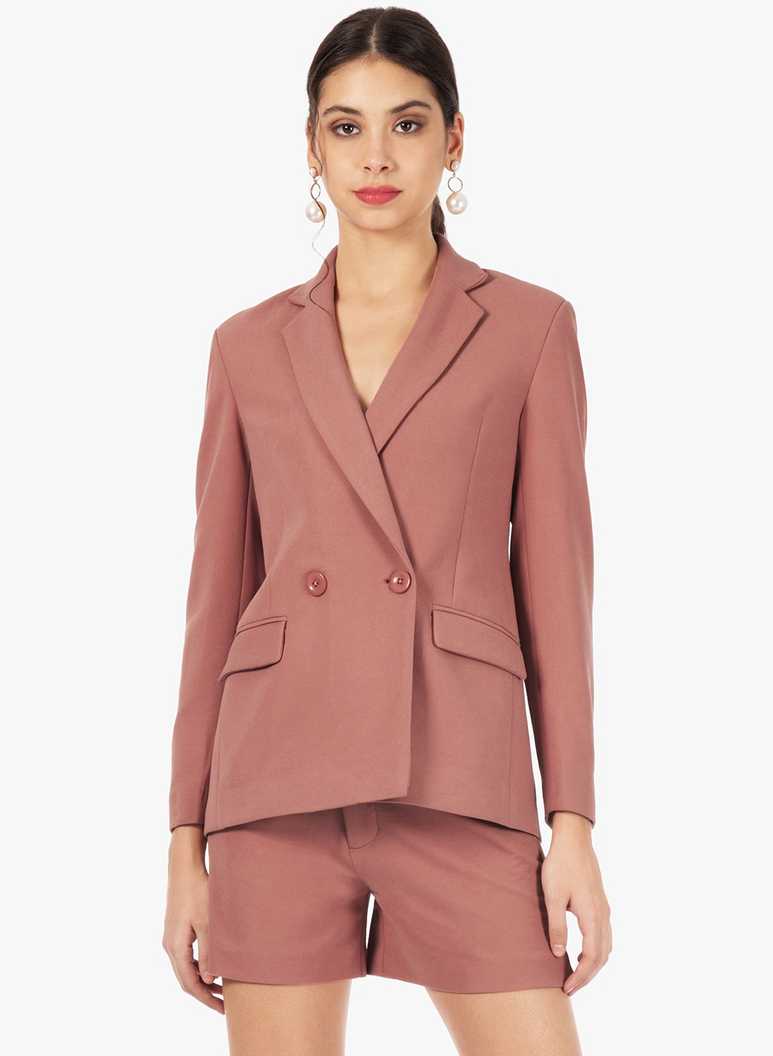 Solid Single Breasted Formal Women's Blazer (Pink)