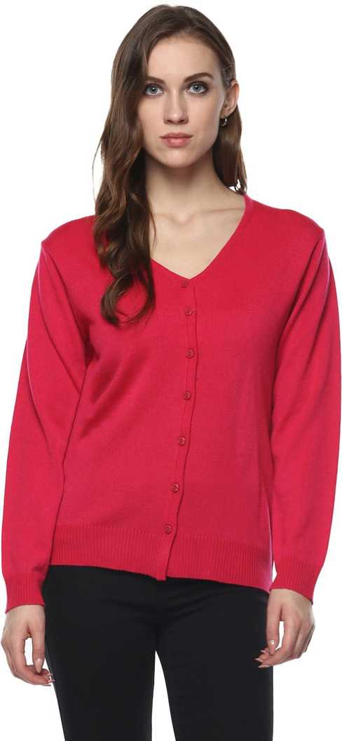Solid V-neck Casual Women Pink Sweater