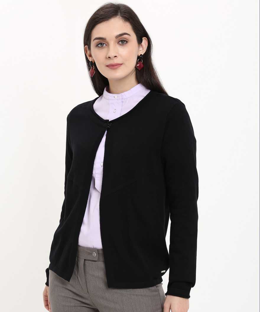 Women's No Closure Solid Cardigan