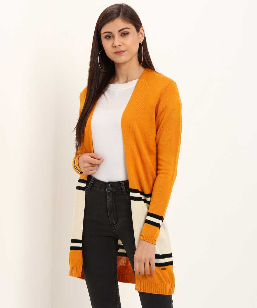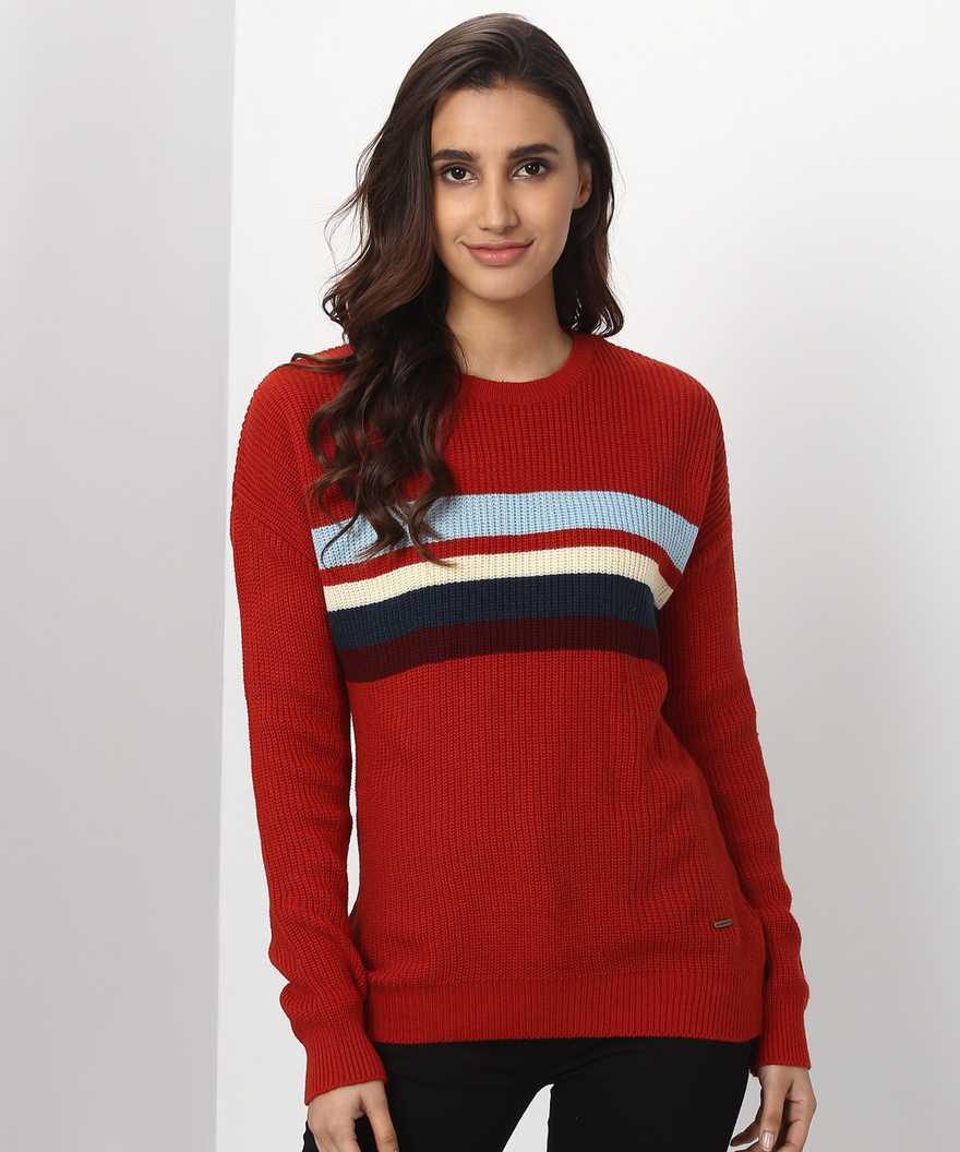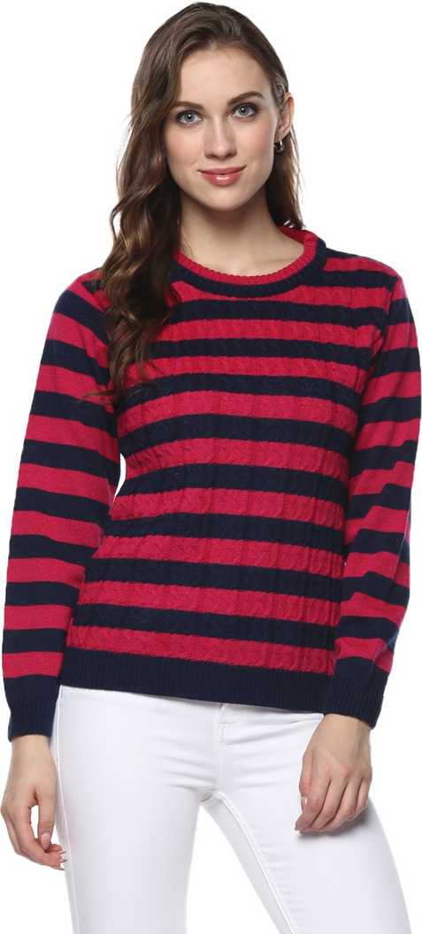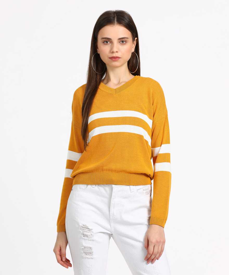 Striped V-neck Casual Women's Dark Blue Sweater#JustHere