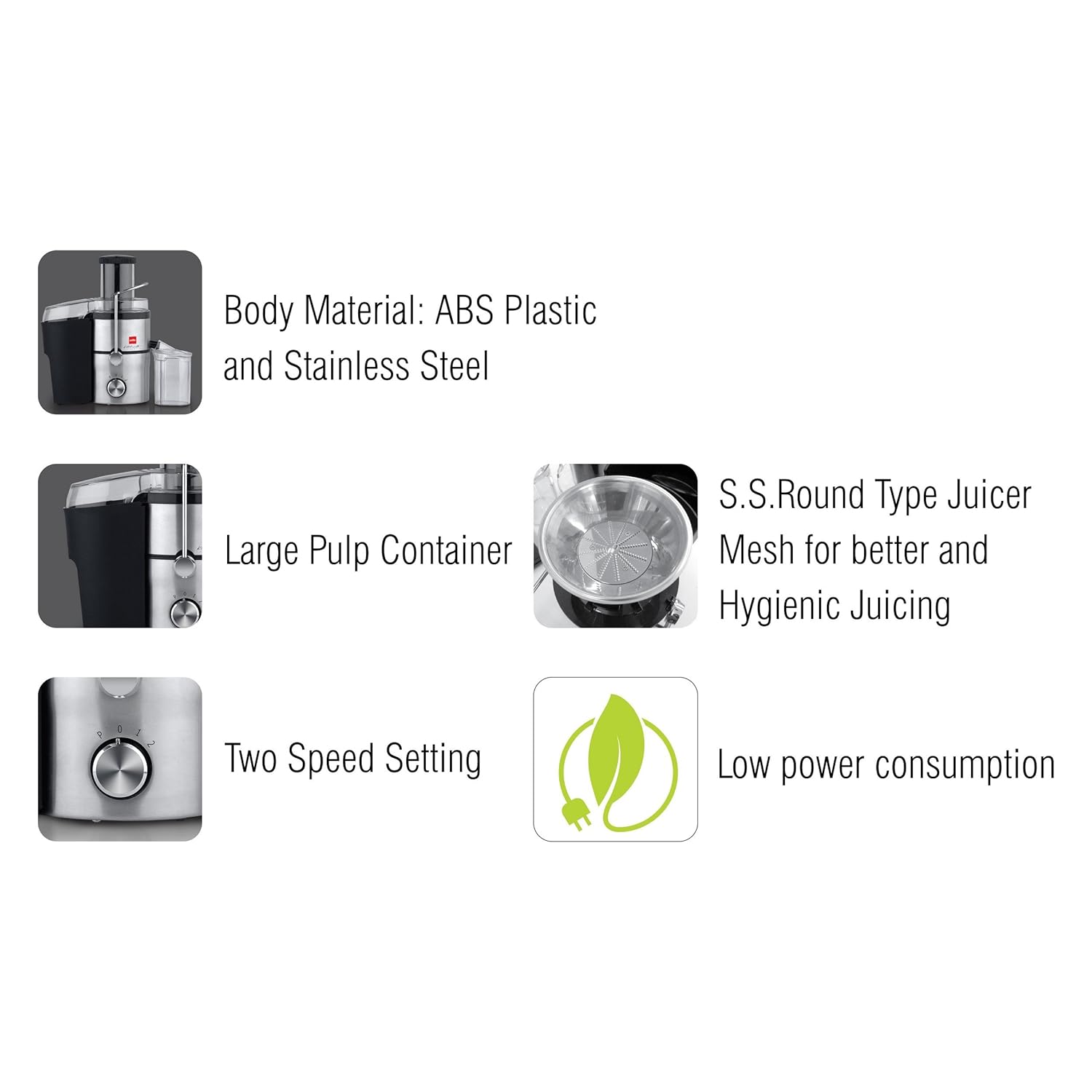 Cello JUC_Steel_Black SLVR 500-Watt Juicer (Black/Silver)