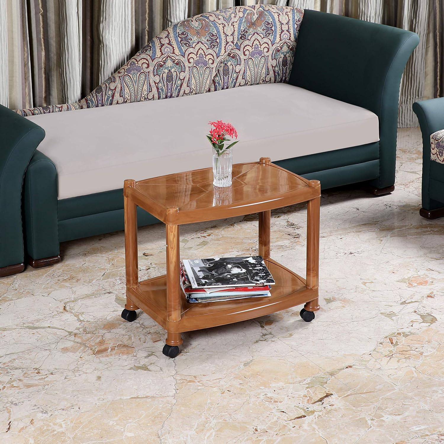 The table is made up of polypropylene with 4 legs which keep the table stable