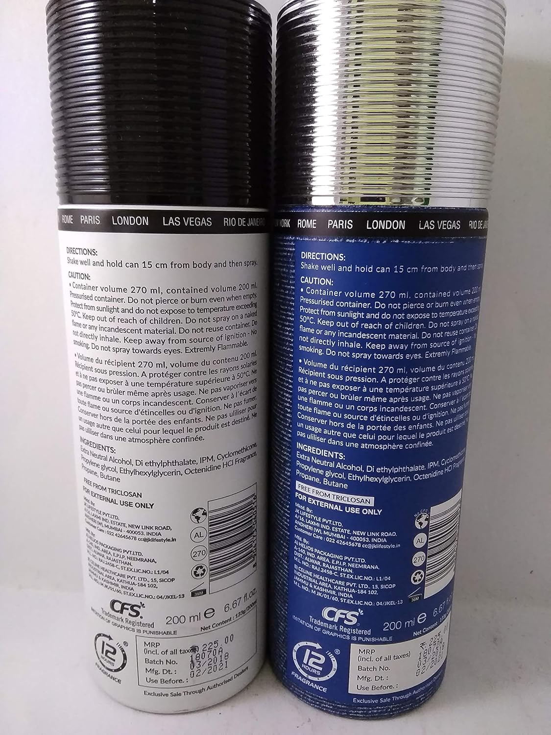 CFS Cargo White And CFS Cargo Denim Deodorant Body Spray, Combo of 2, 200ml. Each