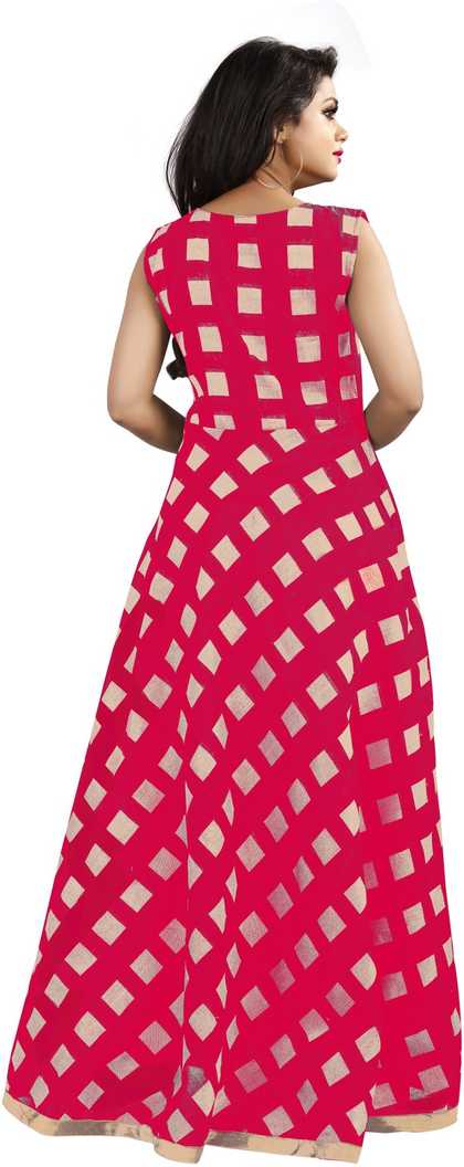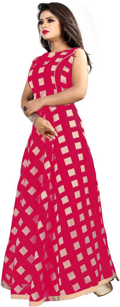 AVG188_XXL - New Latest Designer Simple Printed Chanderi Pink Sleeveless Crew Neck Western Long Kurti Dresses |