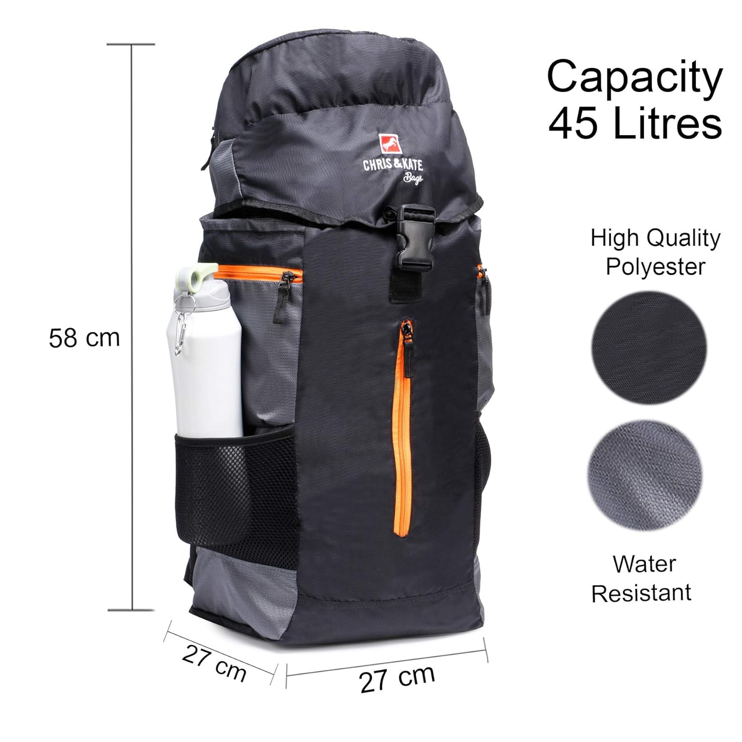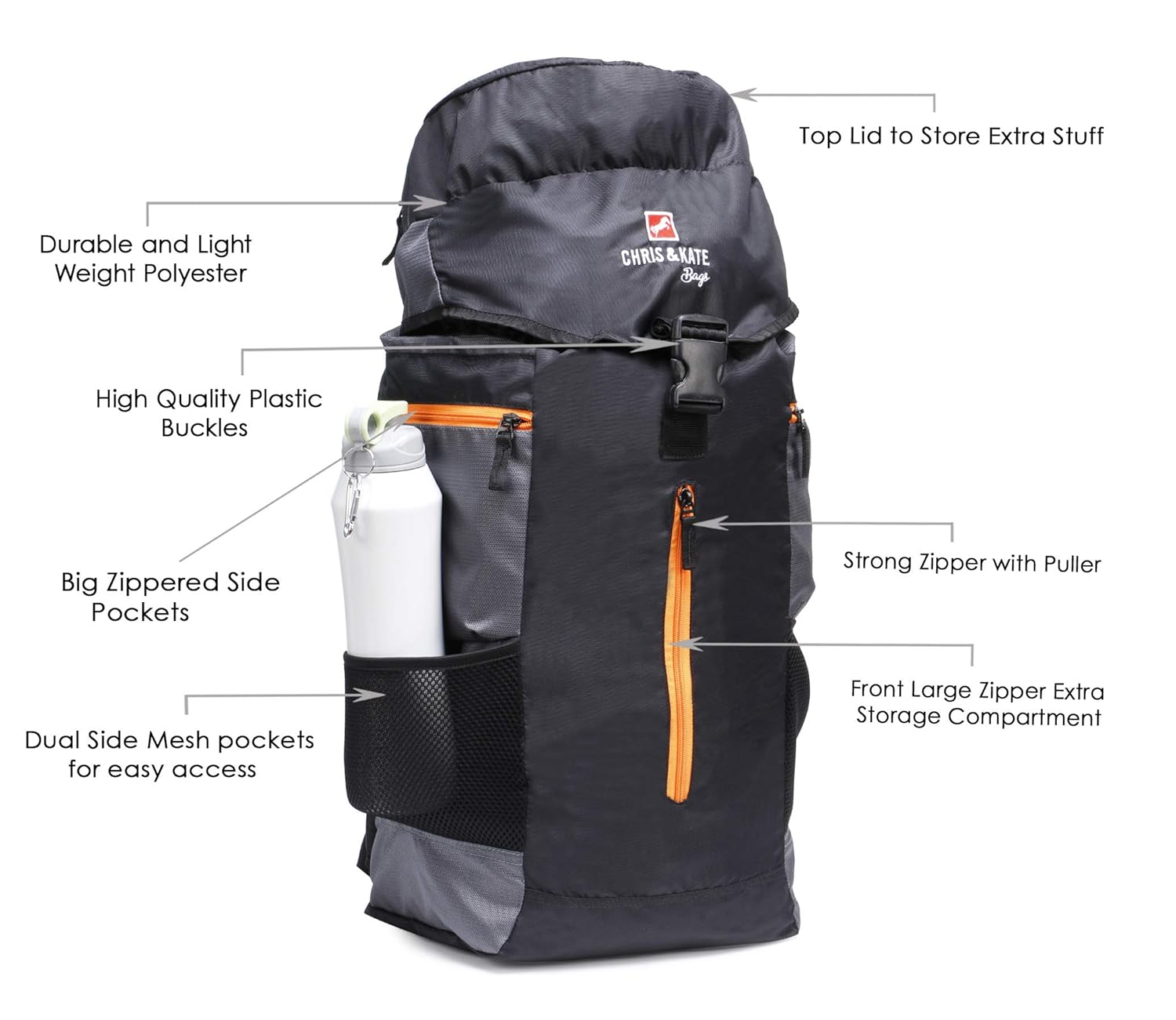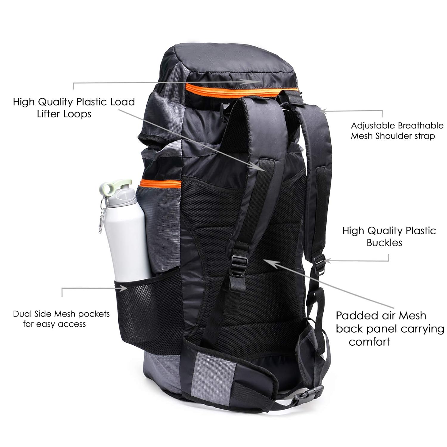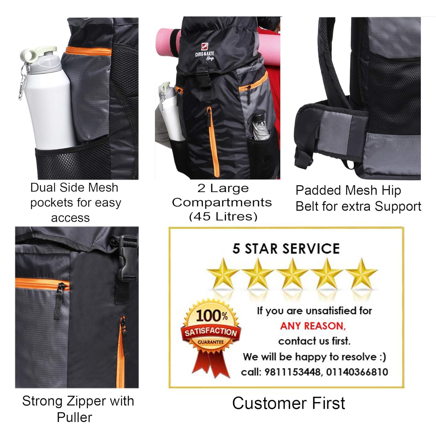 Water repellent: Yes, Compartments: 2, 1 large main compartment, 1 big zipper front pocket for easy to access, 2 side mesh pockets for water bottle and other stuff, hydration compatible and 2 big Zippered side pockets. Adjustable and breathable padded shoulder strap with maximum load capacity. Padded Mesh Hip Belt for a extra support. Zippered big pocket in the hood to Store extra stuff. Roomy and large pockets this Rucksack Backpack holds all your hiking and travel essentials.