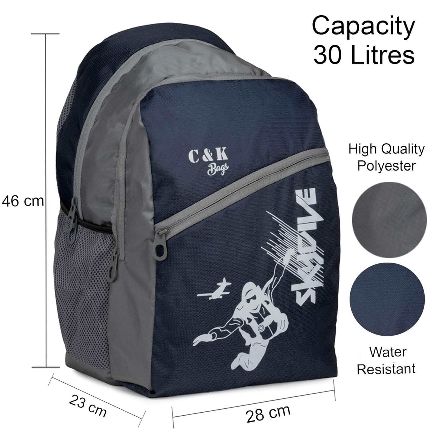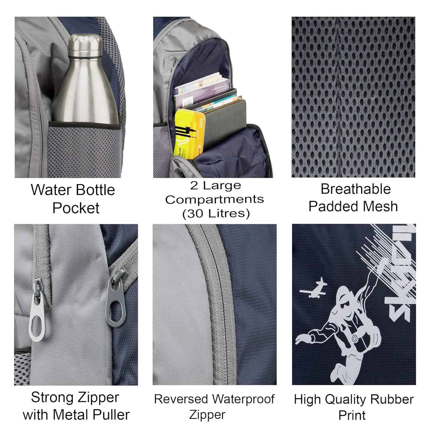 Capacity: 30 Litres; Weight: 0.4kg; Dimensions: 46cmX28cmX23cm.