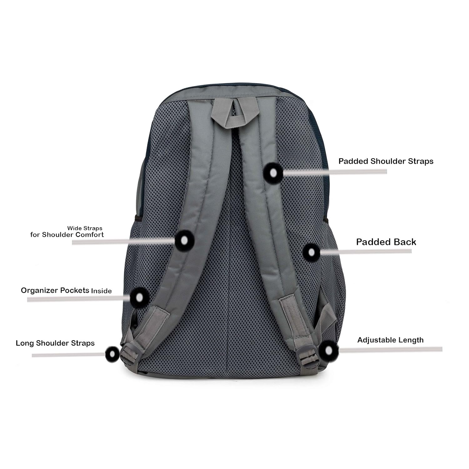 Water Repellant: Yes; Laptop Compartment: Yes ; Compartments:3 & 2 Side Pockets for water bottle & other accessories. Deep side pockets can hold a 1 litre bottle of water