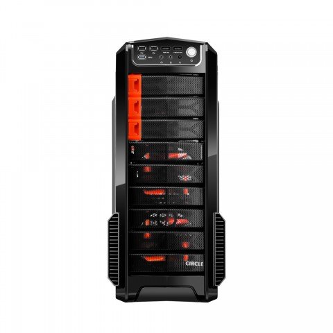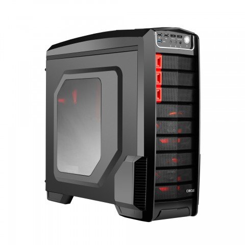 Circle CC 830 Professional Gaming Cabinet (without SMPS) Black Efficient PerformanceRedefine your gaming experience with the Circle CC 830 Professional Gaming Cabinet. Get high speed performance and epic efficiency with this cabinet as it is custom built especially for gamers. It is fitted with three 3.5 inches bays for internal floppy or zip drives, three 5.25 inches bays for external CD or DVD drives and three 2.5 inches SSDs for your hard drives. All these bays give you a power packed performance that enhances your game and lets you showcase your gaming talent to the fullest. It sports 7 expansion slots that can accommodate elongated graphics cards to up to 310 mm that delivers high definition imagery. Advanced Cooling TechnologyBuilt with Micro ATX, ATX and Mini-ITX form factor, the CC 830 gaming cabinet is fitted with 2 fans. When at the peak of high performance, the drives and system are kept cool with a 120 mm cooling fan in the front and a 120 mm cooling fan at the back. The fans are engineered with water cooling features for advanced cooling. The fans are fitted with LED lights to give the gaming cabinet an ambient design. The cabinet has dimensions of 56.4 x 54.2 x 24.8 cm and weighs 7 kg. It can be easily fitted in your computer cabinet for a comfortable access. It has a sturdy structure and 100% hemmed refined work. Connectivity and ColourThe gaming cabinet is equipped with 1 USB 3.0 port and 2 USB 2.0 ports so you can connect your cabinet to external source for an enriched experience. Cirlce CC830 does not compromise on the performance or the architecture of the cabinet. The black midnight design of the cabinet is illuminated by red LED lights in the cabinet fitted on the fan. Buy the Circle CC 830 Professional Gaming Cabinet (without SMPS) Black for a more advanced gaming experience. |