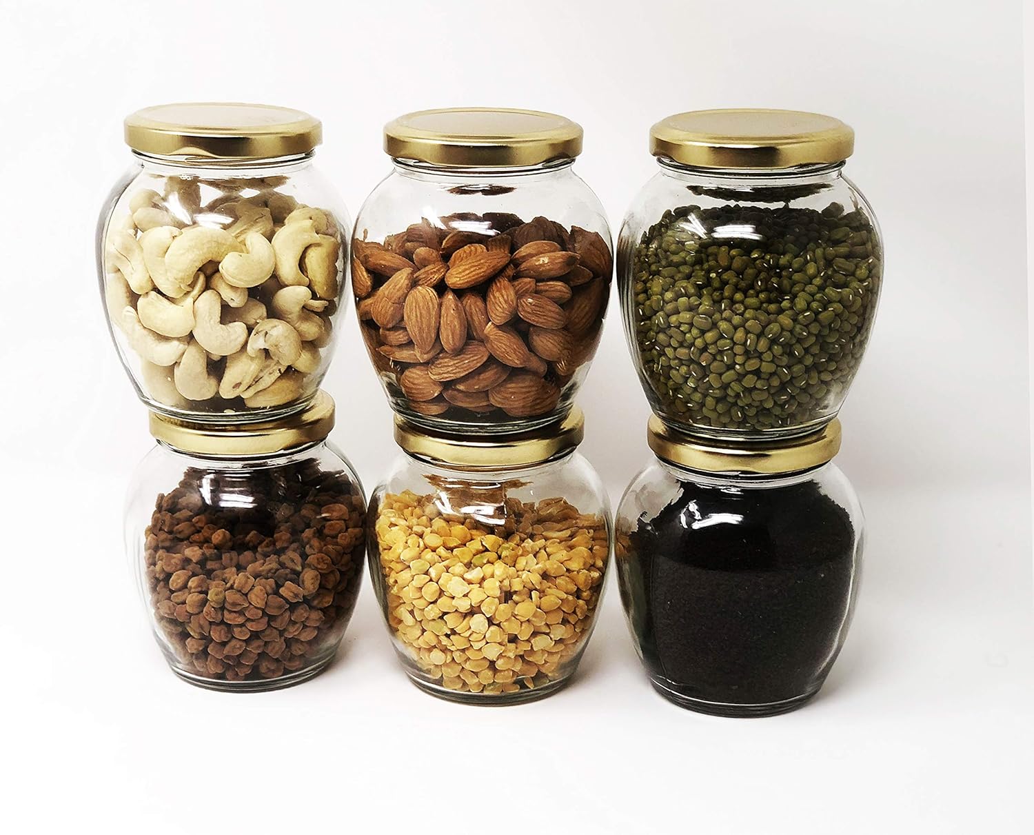 Cloudsell Picasso Glass Jars with Airtight Lid (Gold/400 ml) (6)
